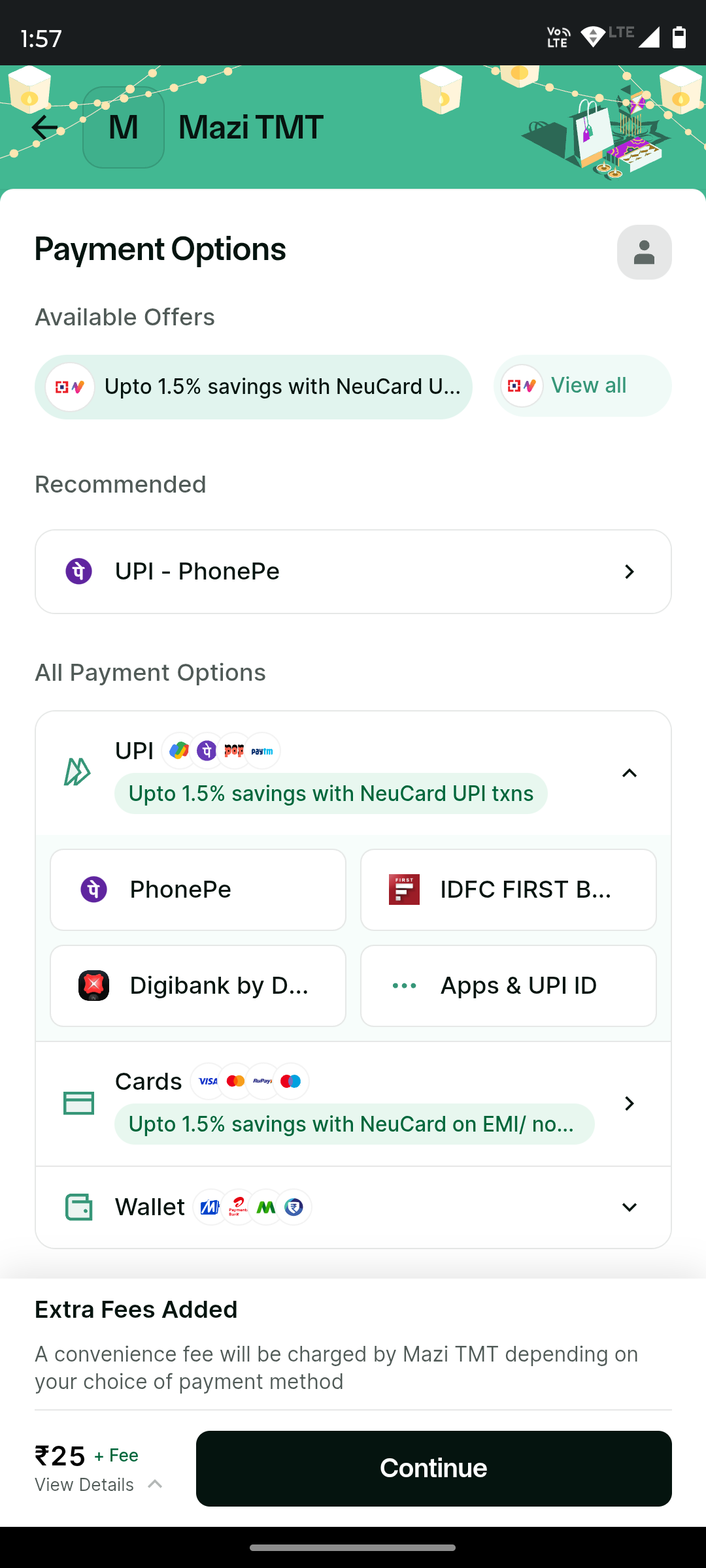 Razorpay is a payment solutions provider, originally known for providing simple integrations for startups to scale their products. This screen is shown to a user when trying to make a payment on a merchant app.
