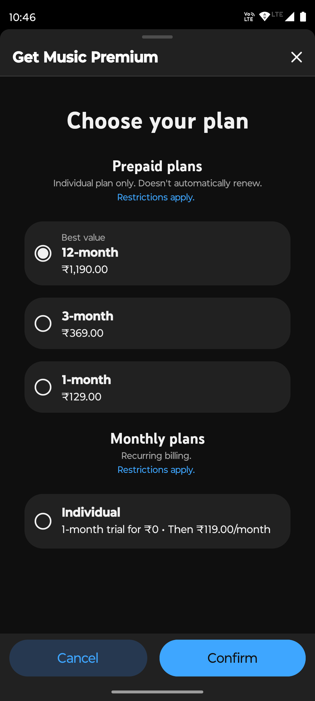 These are the plans shown to the user when they try to upgrade. Improve this screen to better communicate the benefits of upgrading. Consider adding better nudges, tags, to encourage users to purchase a plan.
