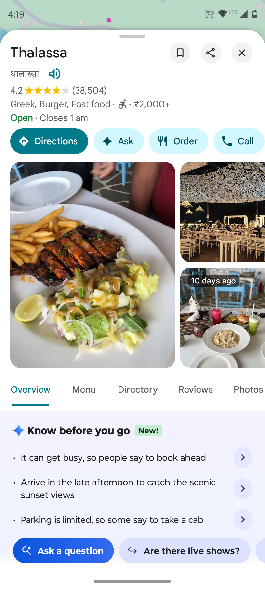 Google Maps is the go to maps app for most people, offering lots of features besides maps and navigation. This screen shows an overview of the key details of a location: a restaurant.